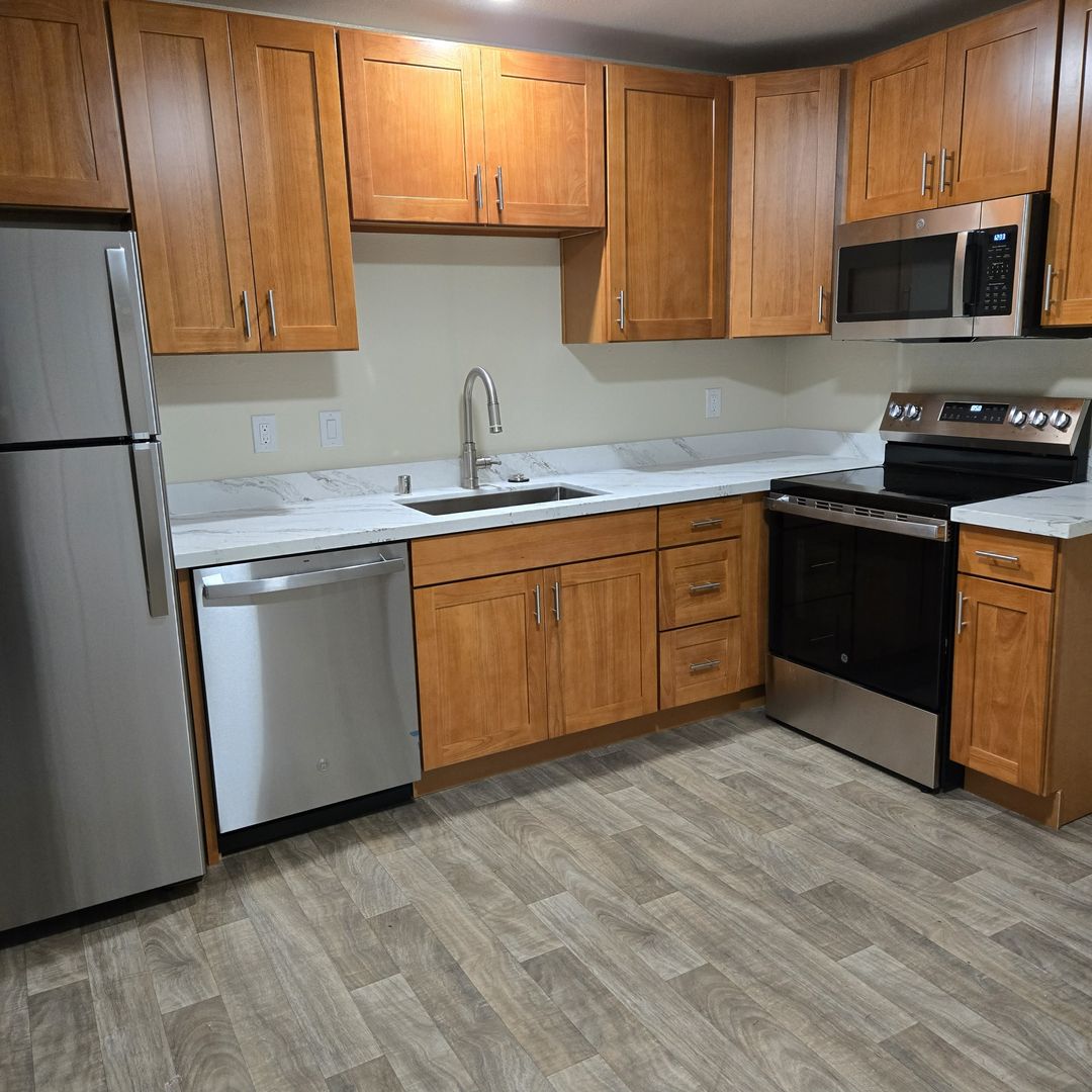 Completely renovated (almost finished) 2 story town home available later this month! Unit has 2 bedrooms and 1.5 bathrooms, along with a wood burning fireplace and back deck! Brand new flooring, hardwood cabinets, quartz counter tops, LED lights, stainless steel appliances. This great place has everything you need! Also, washer and dryer in unit. This townhouse will not last long. Location is a stone's throw from HWY 99 and less than 5 minutes away from I-5.